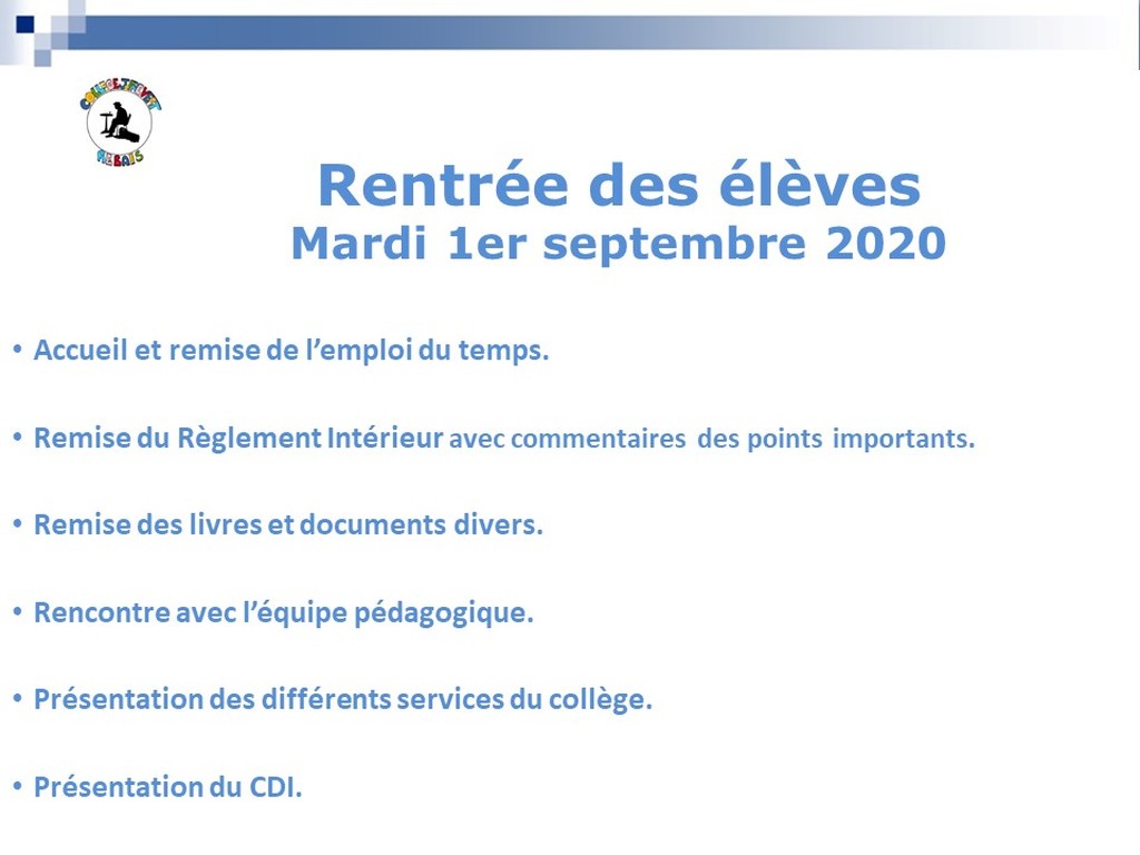 En attendant de pouvoir vous accueillir aux collège et afin de vous permettre de vous familiariser avec l’établissement, nous avons réalisé cette présentation qui vous permettra de découvrir ou redécouvrir les personnels et les locaux.